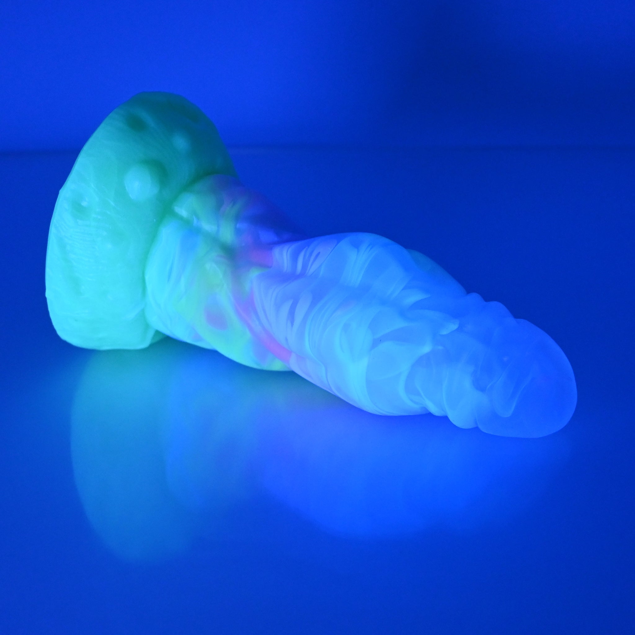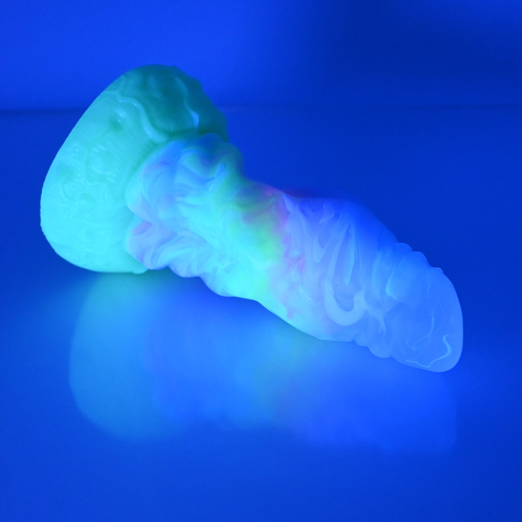**NOTE: This product is made with Near Clear Ecoflex silicone and will therefore discoloration is more obvious (not more likely) than regular cloudy silicone. Please use extra caution to avoid staining with oil based lubes and bodily fluids. Boiling for long periods of time is not recommended. Please read our FAQ for additional care instructions.