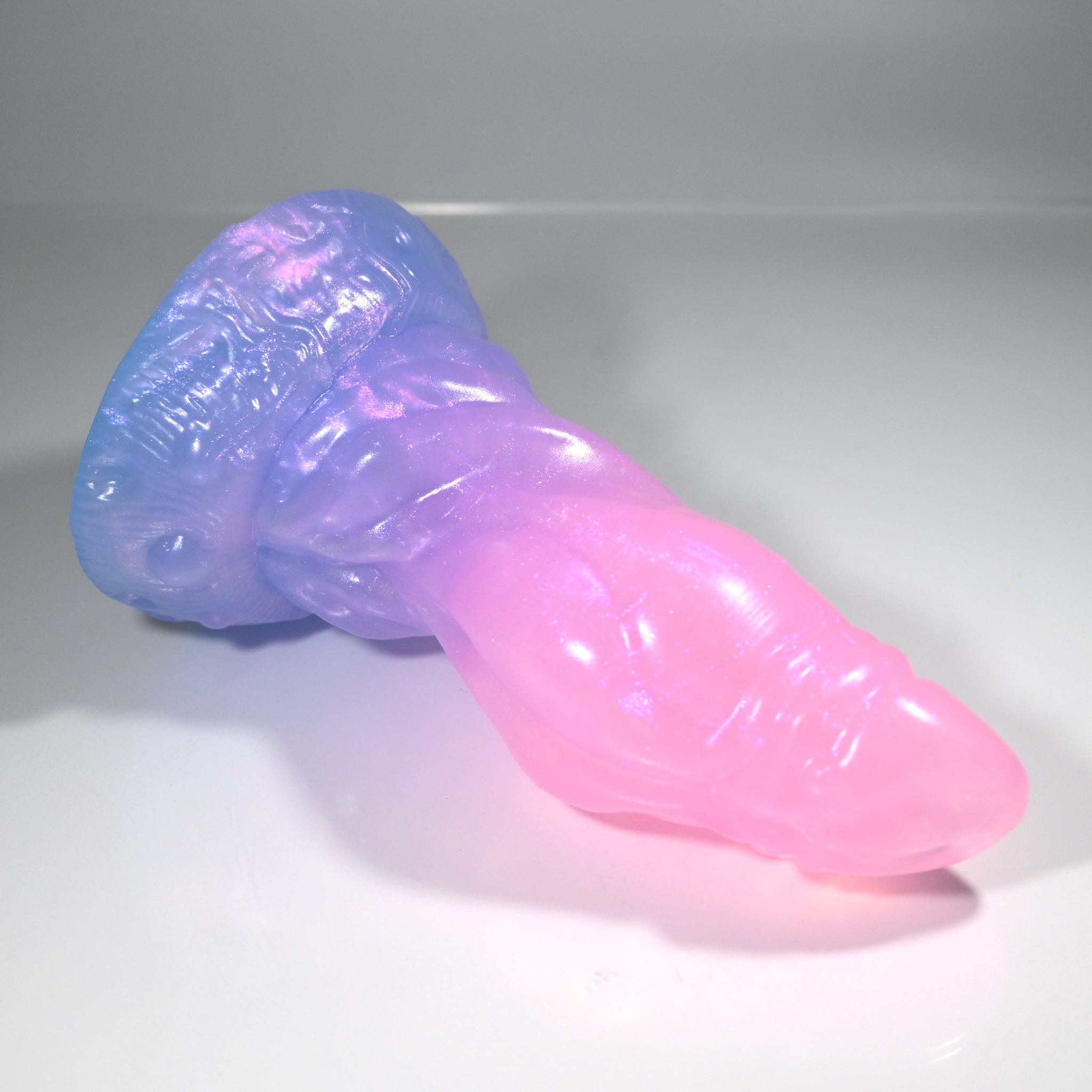 **NOTE: This product is made with Near Clear Ecoflex silicone and will therefore discoloration is more obvious (not more likely) than regular cloudy silicone. Please use extra caution to avoid staining with oil based lubes and bodily fluids. Boiling for long periods of time is not recommended. Please read our FAQ for additional care instructions.