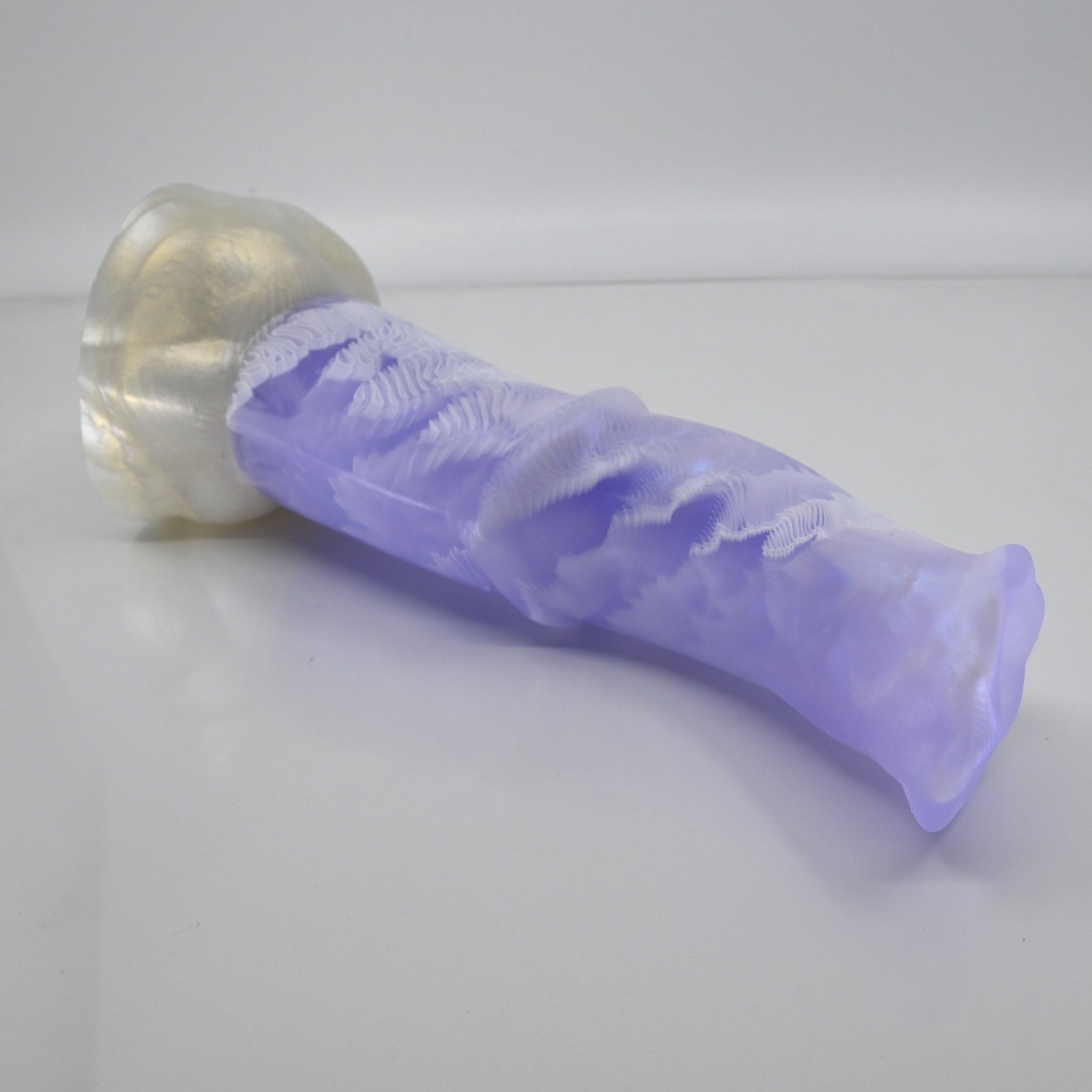 **NOTE: This product is made with Near Clear Ecoflex silicone and will therefore discoloration is more obvious (not more likely) than regular cloudy silicone. Please use extra caution to avoid staining with oil based lubes and bodily fluids. Boiling for long periods of time is not recommended. Please read our FAQ for additional care instructions.