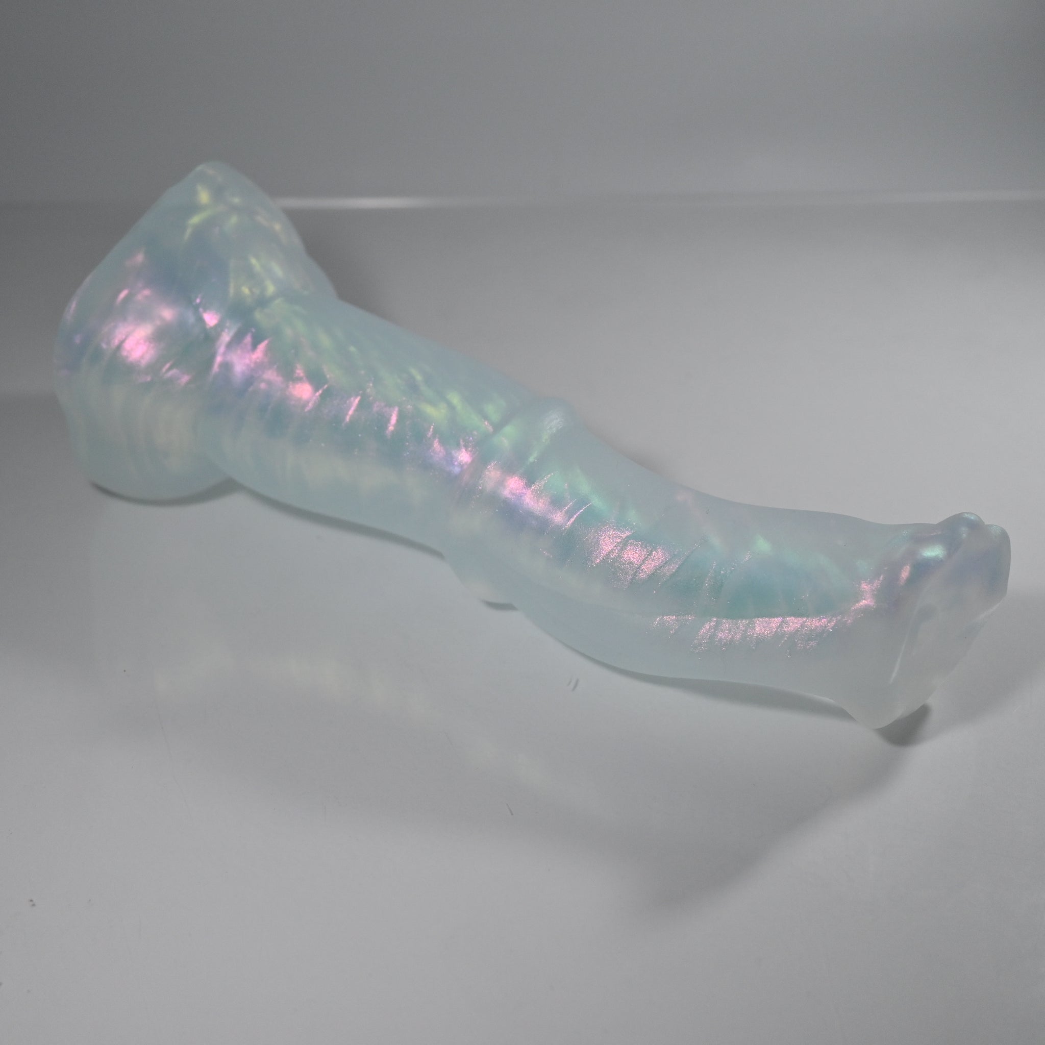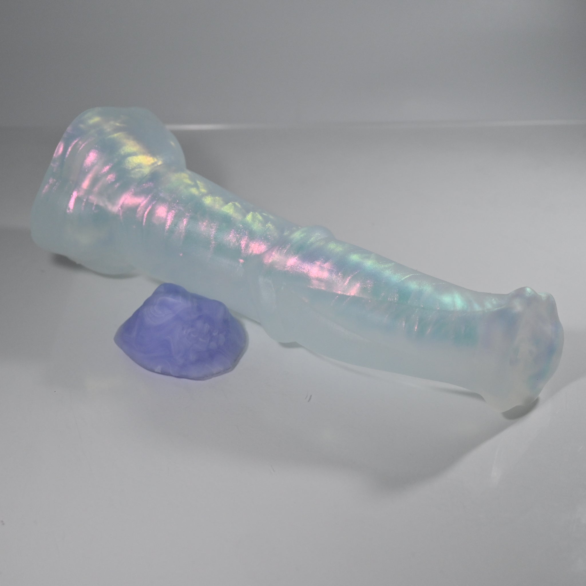 **NOTE: This product is made with Near Clear Ecoflex silicone and will therefore discoloration is more obvious (not more likely) than regular cloudy silicone. Please use extra caution to avoid staining with oil based lubes and bodily fluids. Boiling for long periods of time is not recommended. Please read our FAQ for additional care instructions.