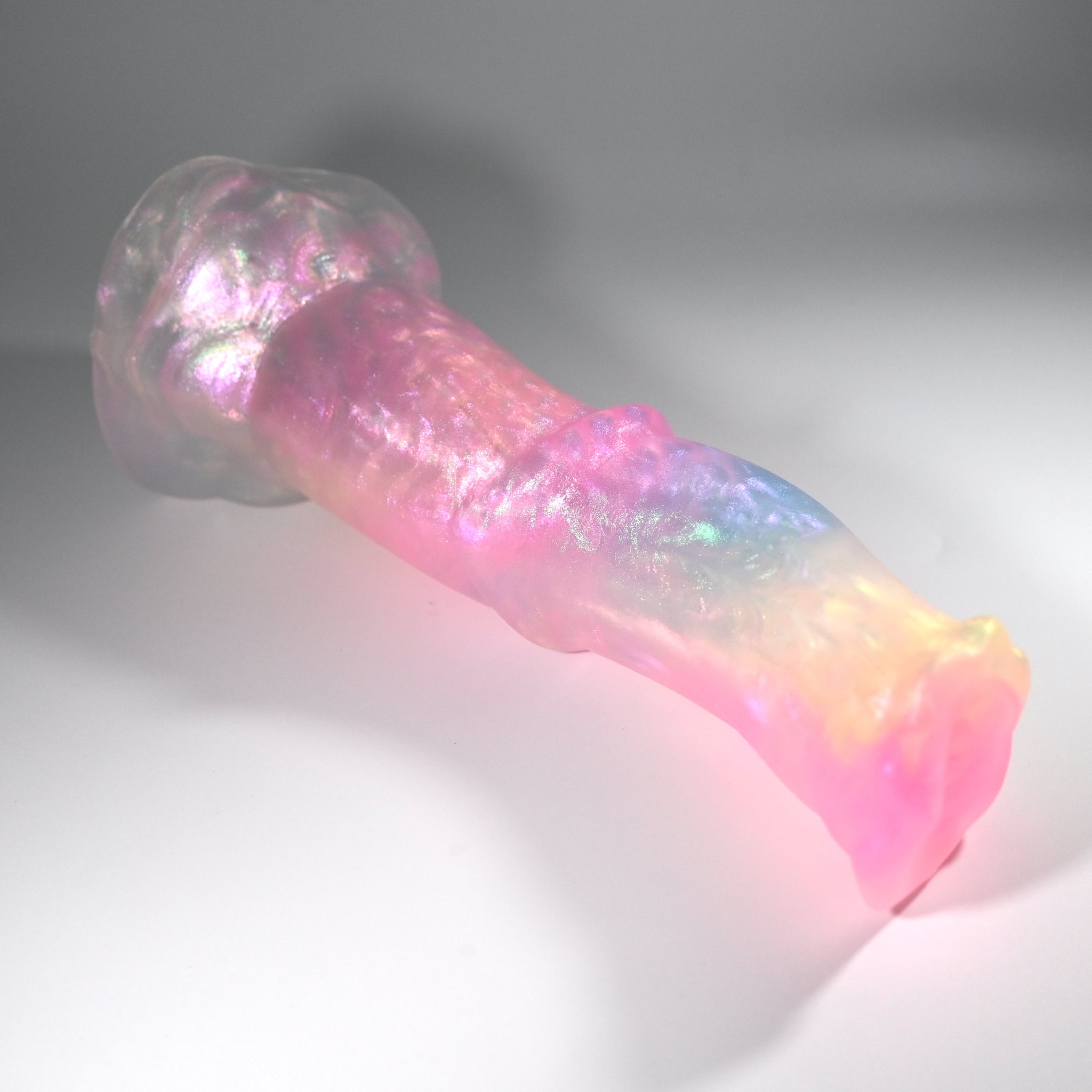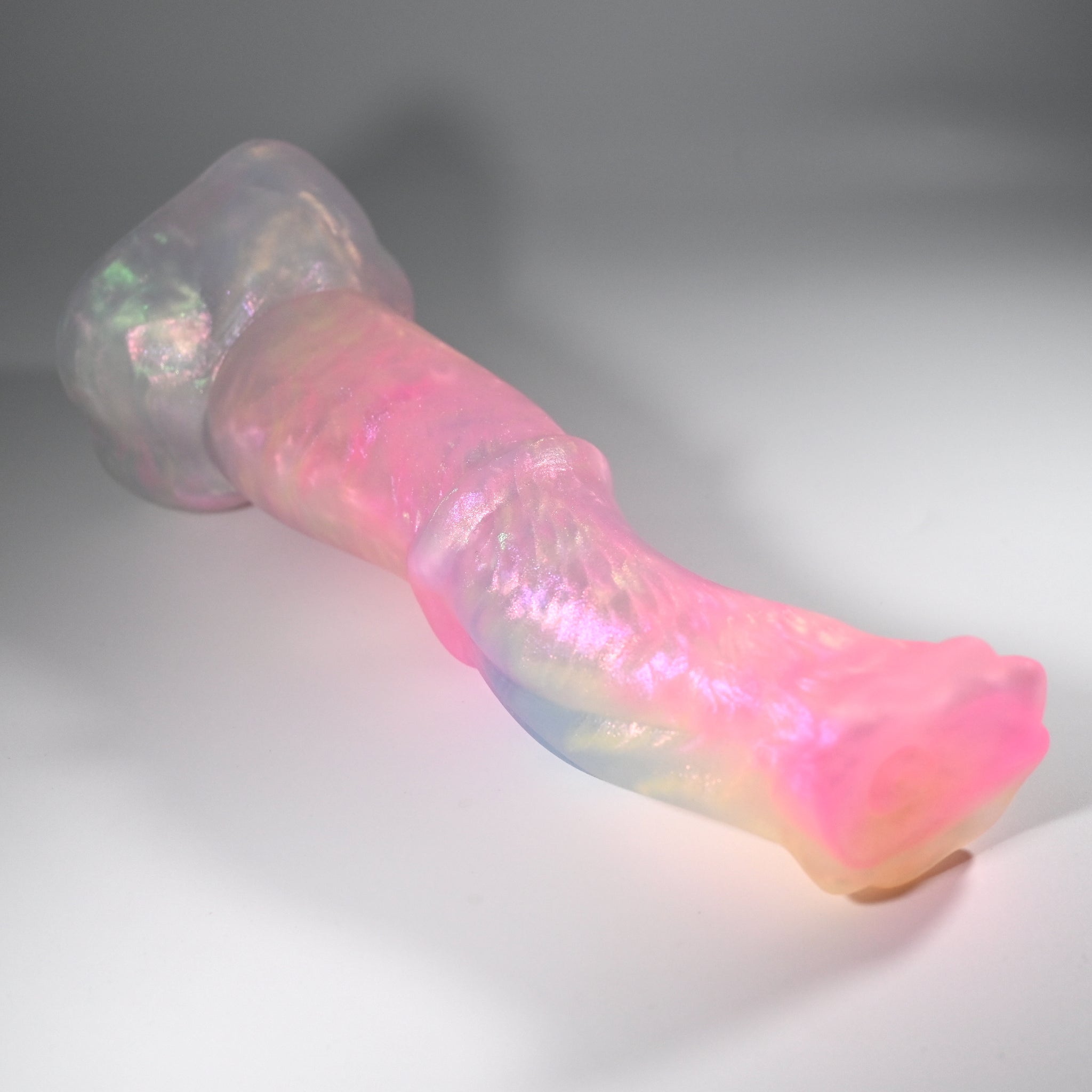 **NOTE: This product is made with Near Clear Ecoflex silicone and will therefore discoloration is more obvious (not more likely) than regular cloudy silicone. Please use extra caution to avoid staining with oil based lubes and bodily fluids. Boiling for long periods of time is not recommended. Please read our FAQ for additional care instructions.