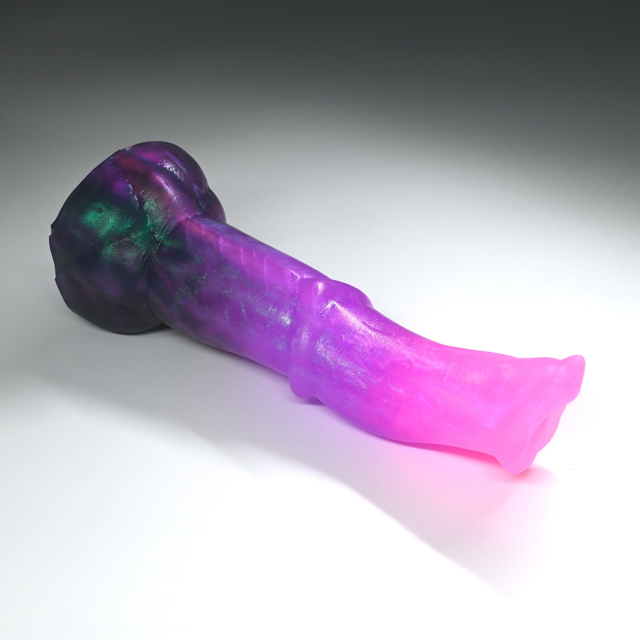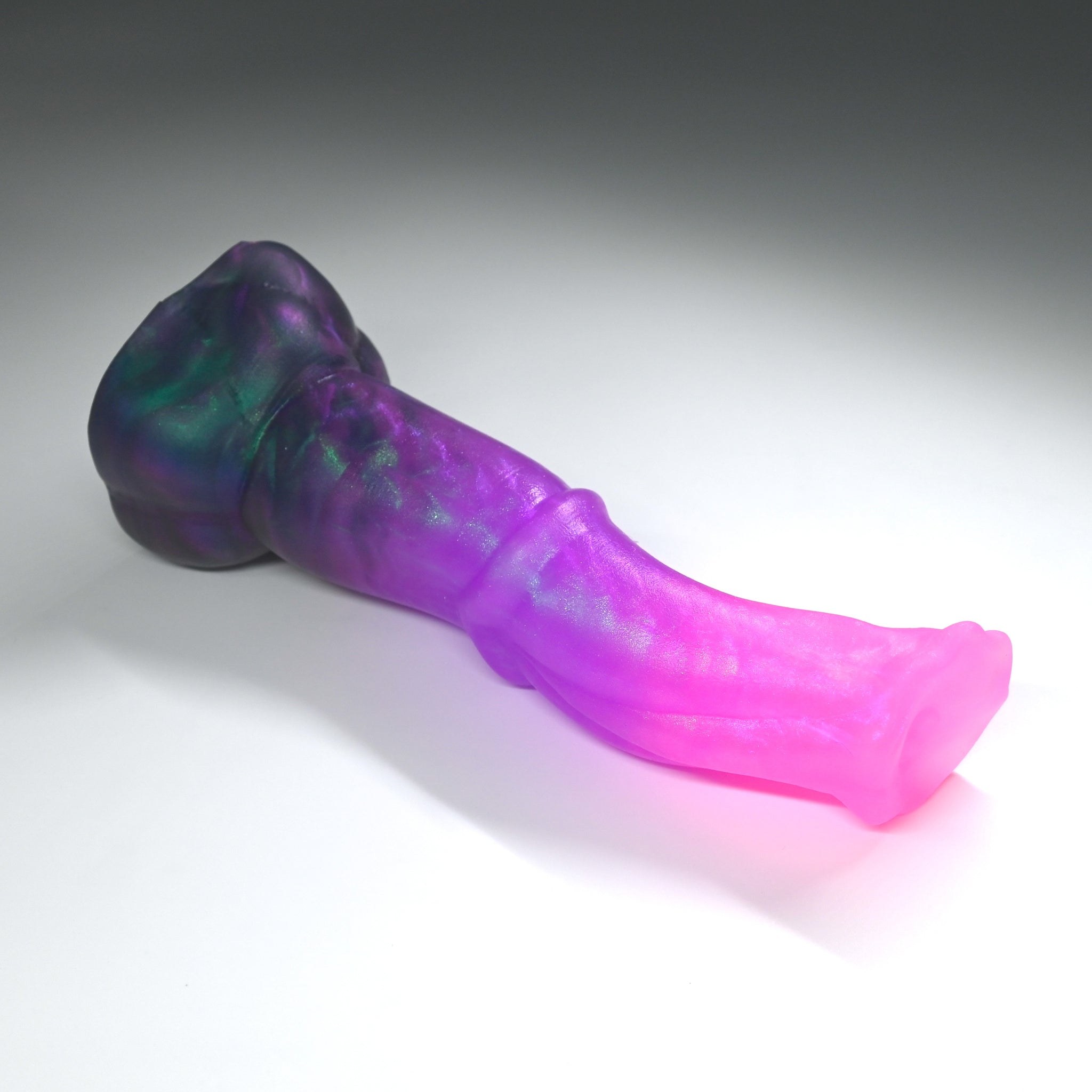 **NOTE: This product is made with Near Clear Ecoflex silicone and will therefore discoloration is more obvious (not more likely) than regular cloudy silicone. Please use extra caution to avoid staining with oil based lubes and bodily fluids. Boiling for long periods of time is not recommended. Please read our FAQ for additional care instructions.