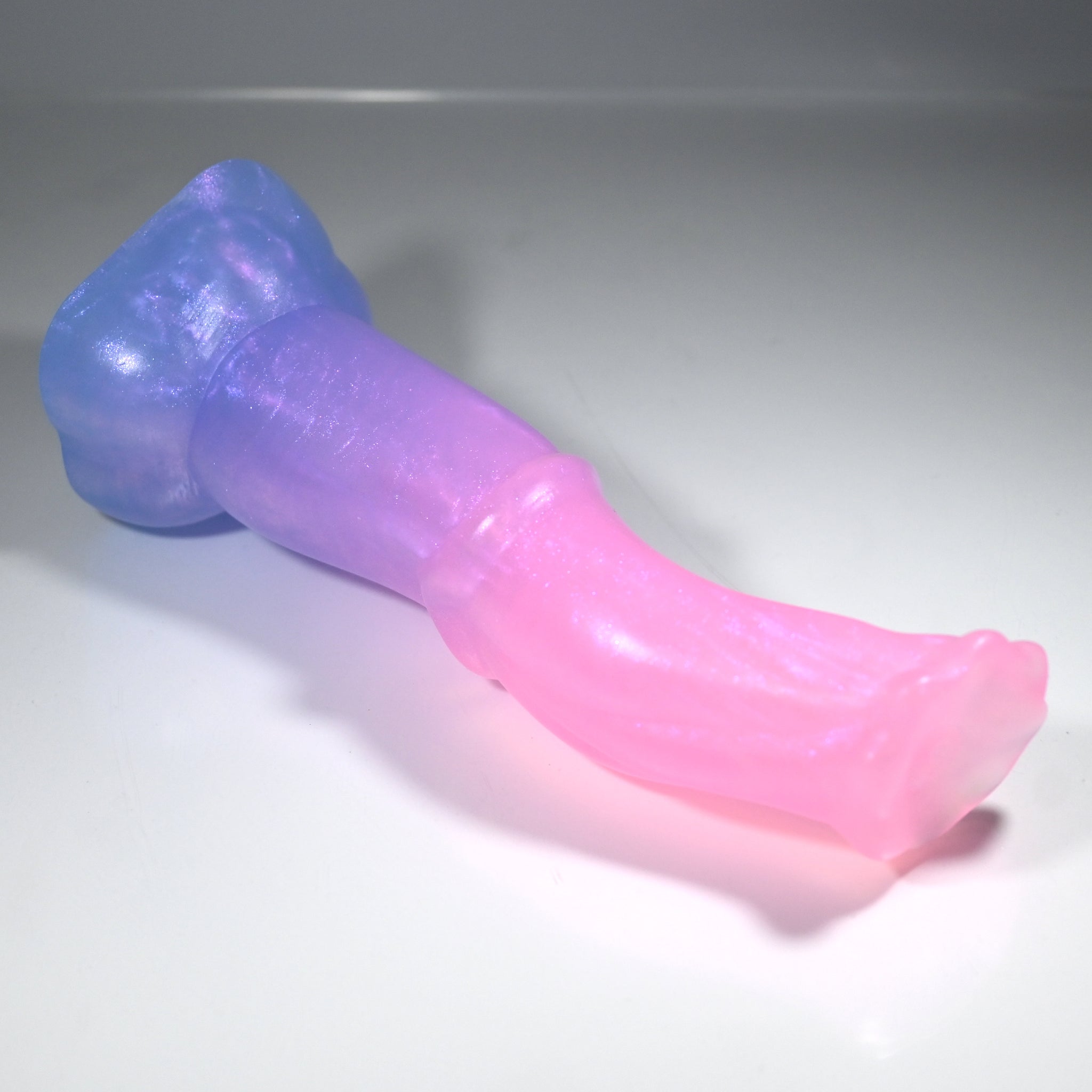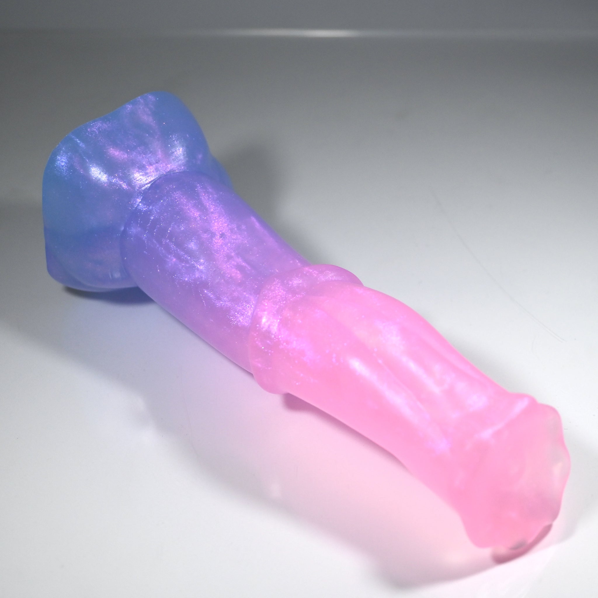 **NOTE: This product is made with Near Clear Ecoflex silicone and will therefore discoloration is more obvious (not more likely) than regular cloudy silicone. Please use extra caution to avoid staining with oil based lubes and bodily fluids. Boiling for long periods of time is not recommended. Please read our FAQ for additional care instructions.