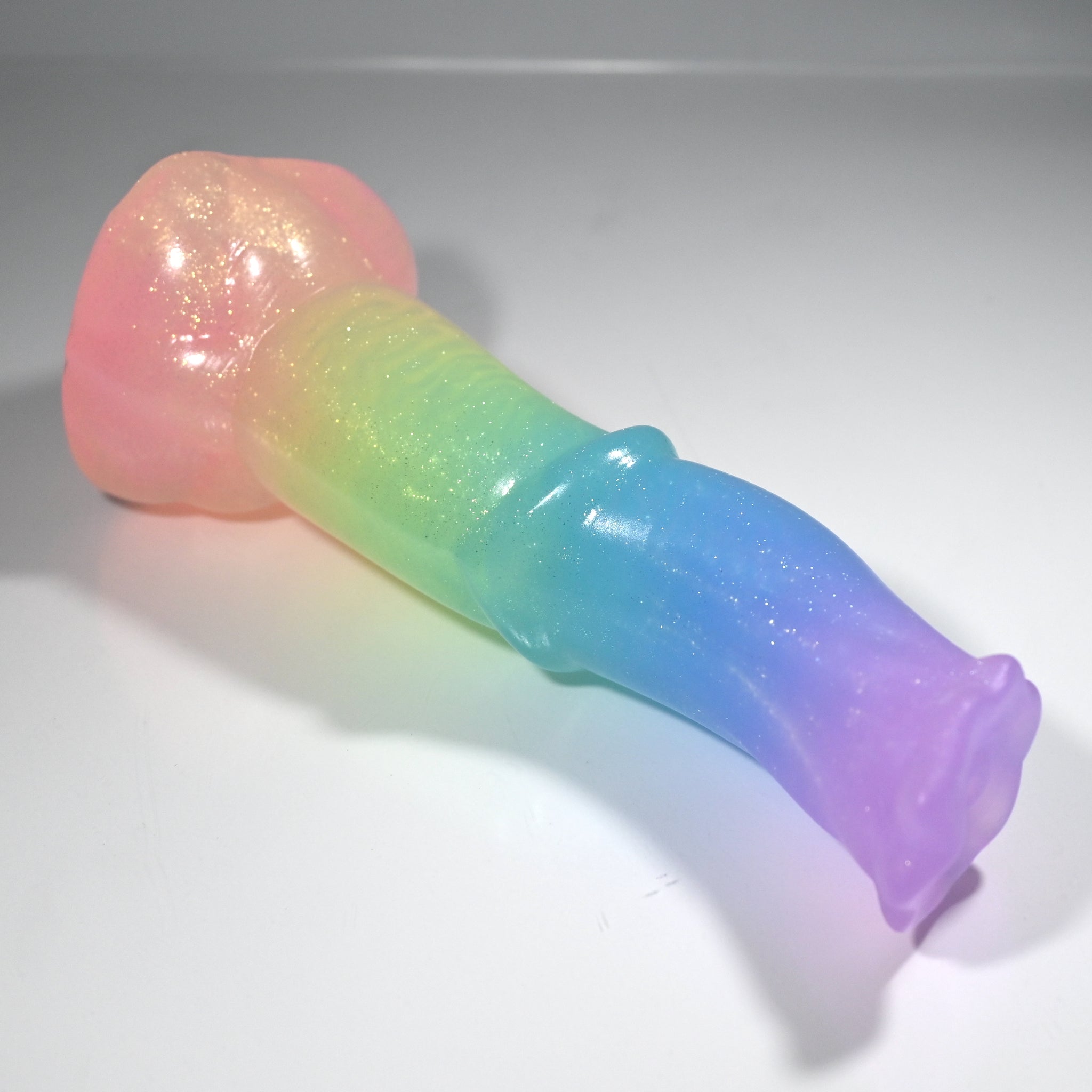 **NOTE: This product is made with Near Clear Ecoflex silicone and will therefore discoloration is more obvious (not more likely) than regular cloudy silicone. Please use extra caution to avoid staining with oil based lubes and bodily fluids. Boiling for long periods of time is not recommended. Please read our FAQ for additional care instructions.