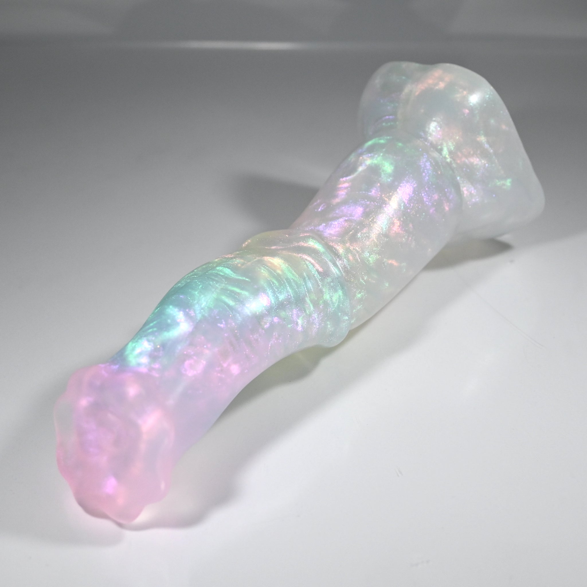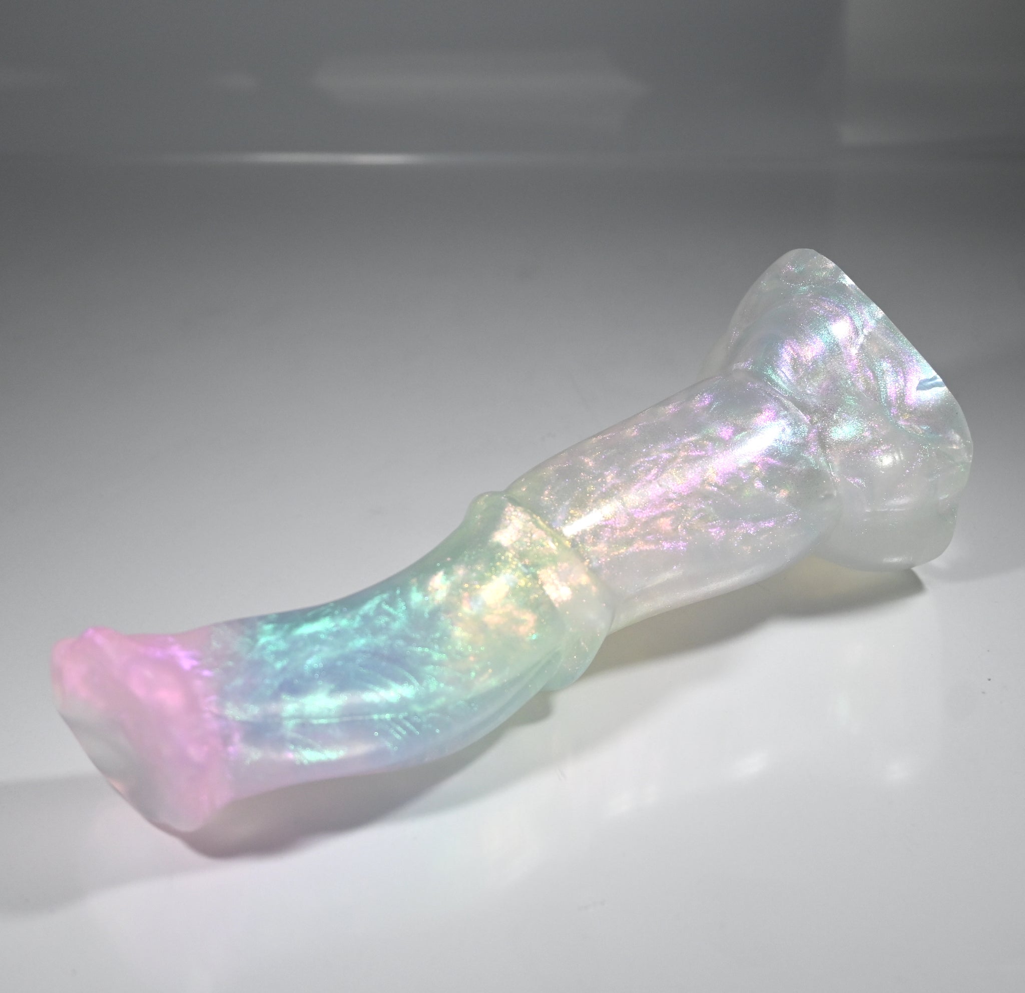 **NOTE: This product is made with Near Clear Ecoflex silicone and will therefore discoloration is more obvious (not more likely) than regular cloudy silicone. Please use extra caution to avoid staining with oil based lubes and bodily fluids. Boiling for long periods of time is not recommended. Please read our FAQ for additional care instructions.