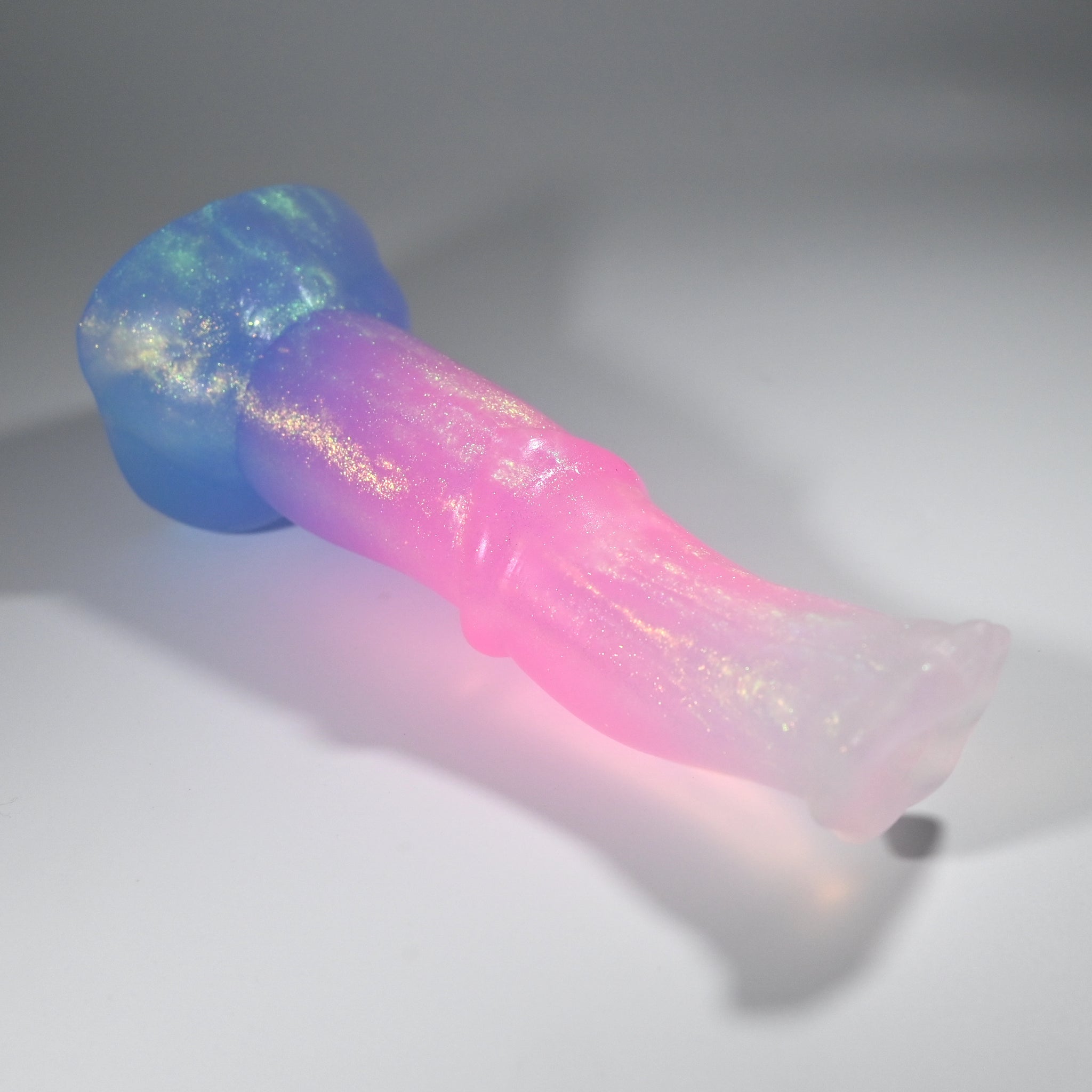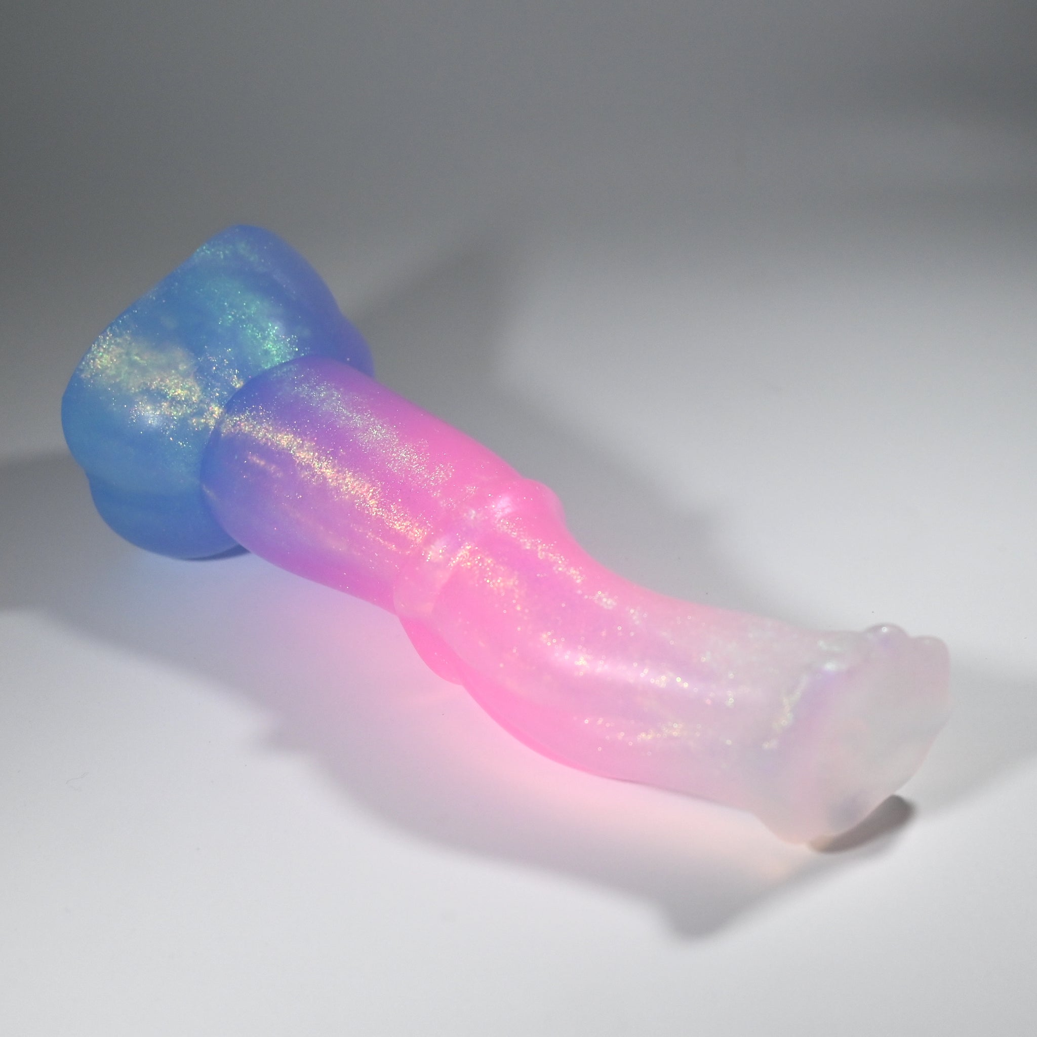 **NOTE: This product is made with Near Clear Ecoflex silicone and will therefore discoloration is more obvious (not more likely) than regular cloudy silicone. Please use extra caution to avoid staining with oil based lubes and bodily fluids. Boiling for long periods of time is not recommended. Please read our FAQ for additional care instructions.