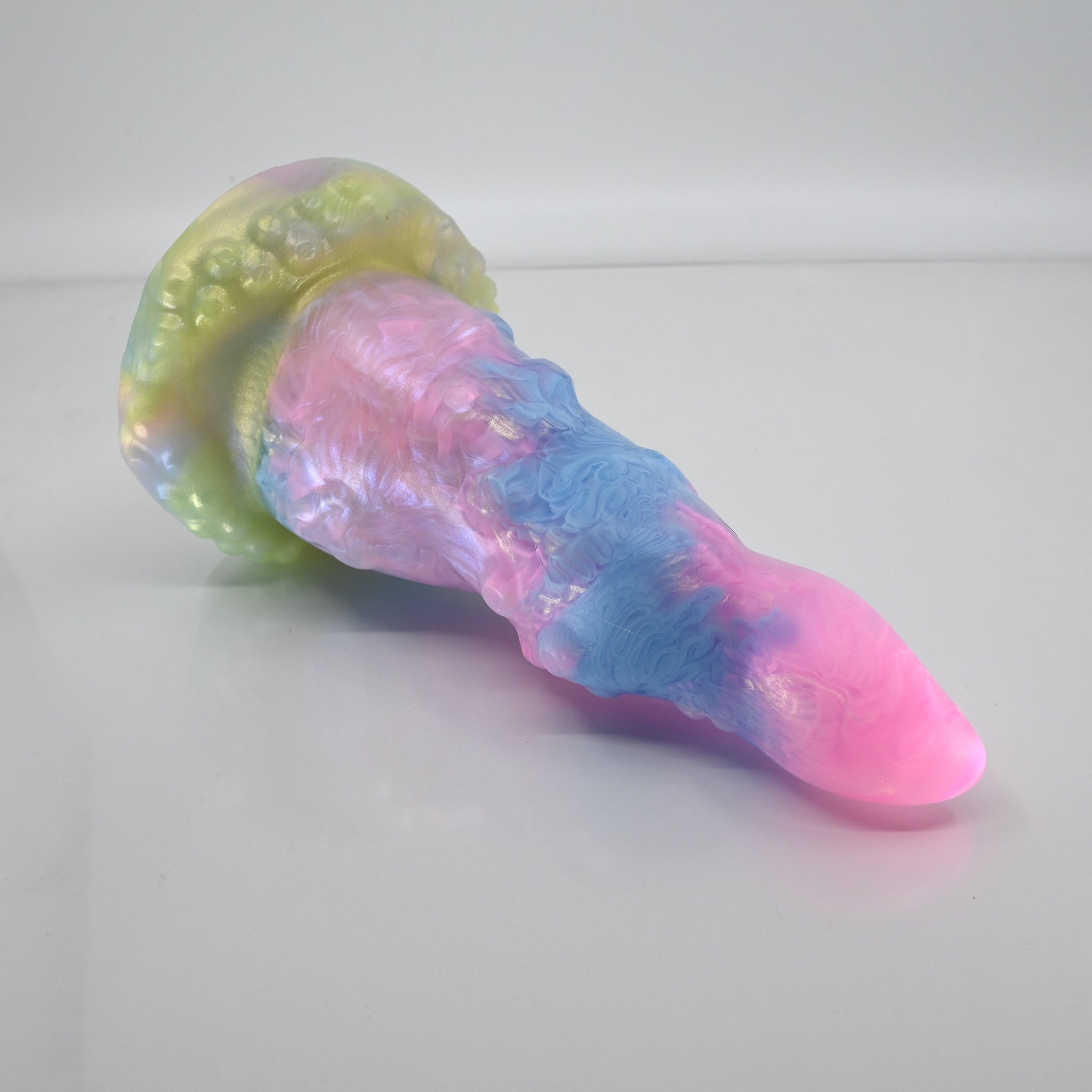 **NOTE: This product is made with Near Clear Ecoflex silicone and will therefore discoloration is more obvious (not more likely) than regular cloudy silicone. Please use extra caution to avoid staining with oil based lubes and bodily fluids. Boiling for long periods of time is not recommended. Please read our FAQ for additional care instructions.